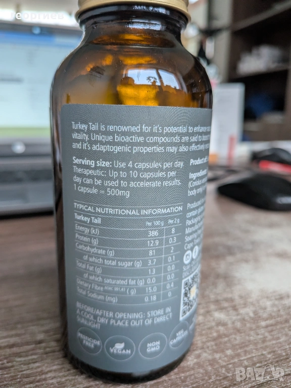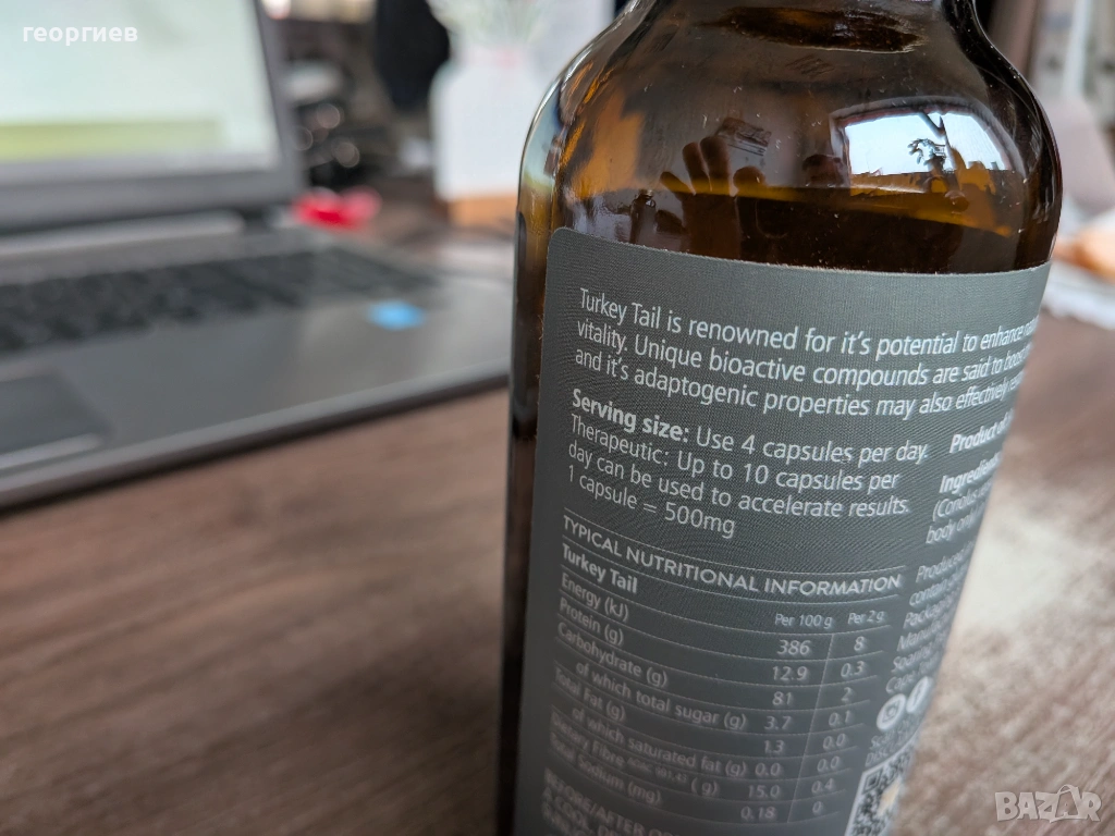Кориолус /Coriolus versicolor/, екстракт от плодно тяло : 3000 мг.