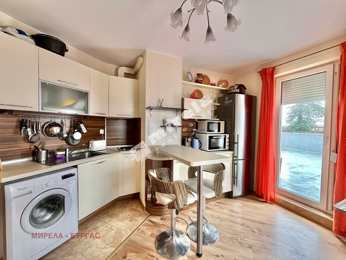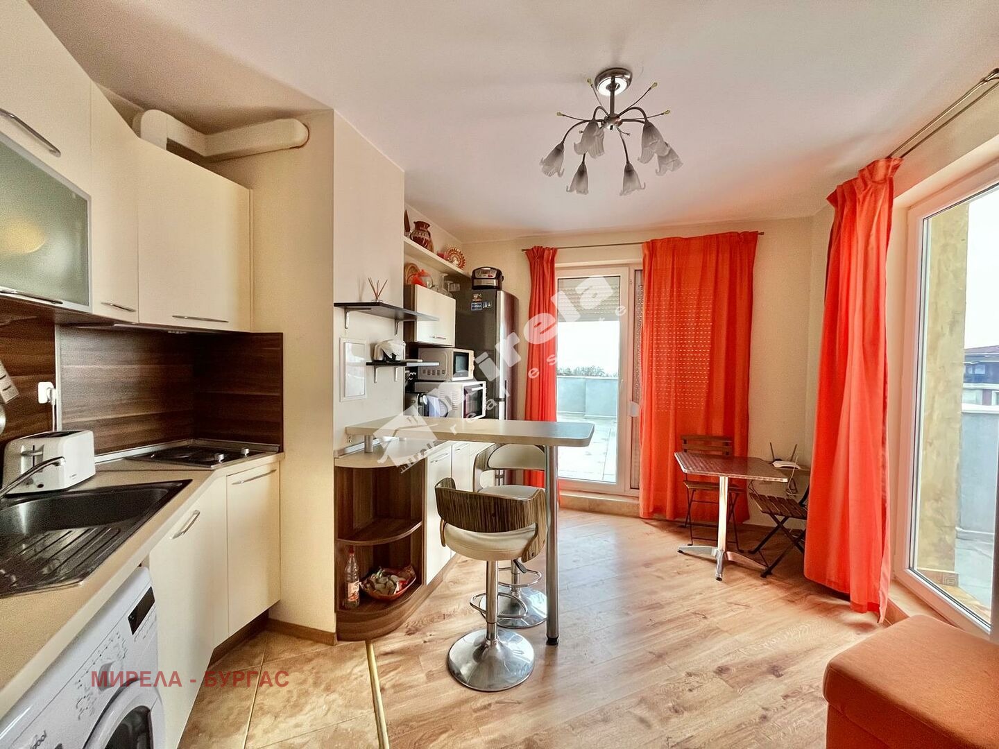 Далечна гледка към морето; Имотът има жилищен статут; Има надземно паркомясто; Сградата има асансьор; Продава се с обзавеждане, което подлежи на уточнение; Има физическа охрана; ЕТАП НА СТРОИТЕЛСТВО: разрешение за ползване (Акт 16); ОТОПЛЕНИЕ: климатик; Има 1 балкон/тераса; С довършителни дейности; Има такса поддръжка; Непреходен; Целогодишно ползване; ВИД СТРОИТЕЛСТВО: тухла; ГОДИНА НА СТРОИТЕЛСТВО: 2010 г.; ИЗЛОЖЕНИЕ: гледка към морето; СПАЛНИ: 2; БАНИ: 1; ДОГРАМА: Алуминиева