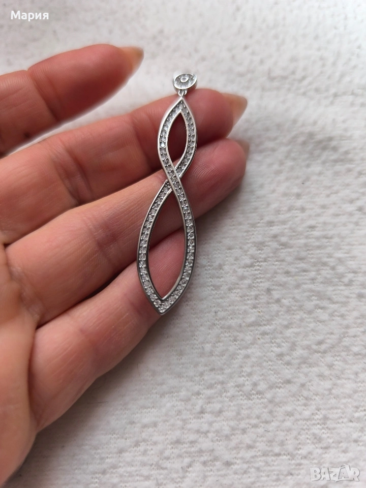Уникални сребърни обеци във формата на безкрайност с цирконии, проба 925.