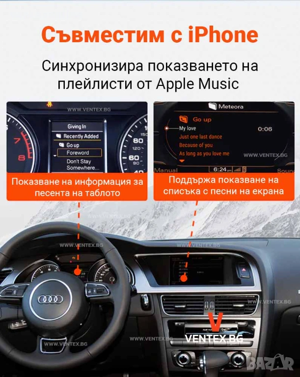 2. НЕ е съвместим за Audi Navigation Plus с музикален интерфейс AMI.