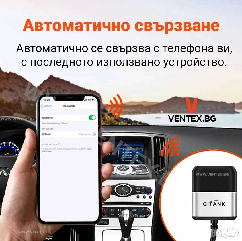 GITANK BT100 iPod 30 pin се свързва директно към оригиналния 30-pin iPod конектор и ти позволява да слушаш музика от телефона си с високо качество на звука.