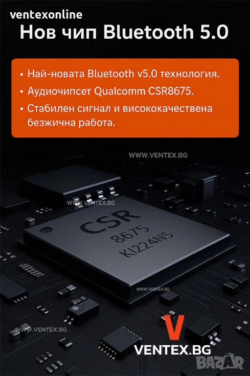 • Високо качество на звука Qualcomm CSR8675, APTX HD :