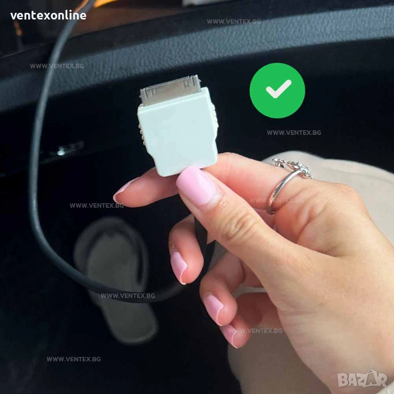 Съвместим с Volkswagen, Mercedes-Benz, Audi и други модели с 30-pin iPod конектор (показан на Снимка 2).
