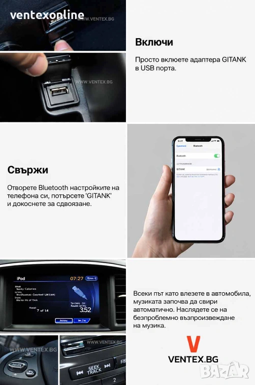 Bluetooth 5.0 адаптер за Infiniti с USB / iPod порт – GITANK