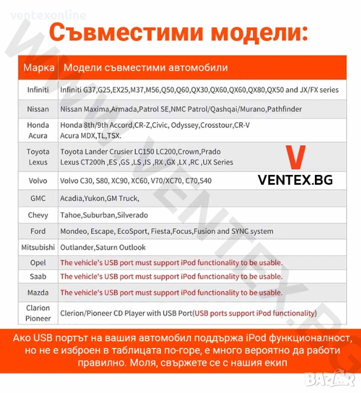 1. Изисква фабричен USB / iPod порт