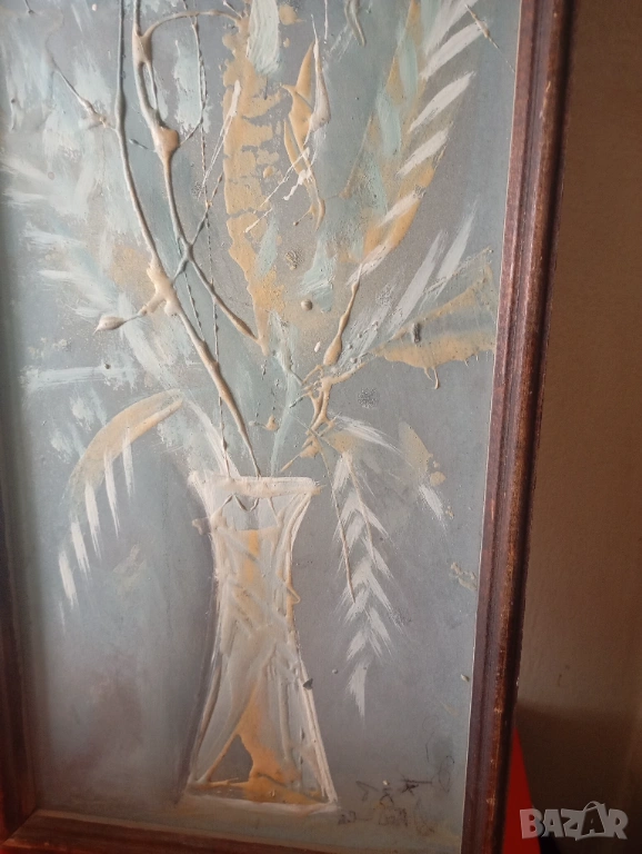 картина-цветя,масло на шперплат,подписана в дървена рамка.