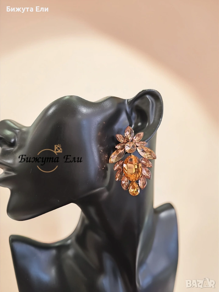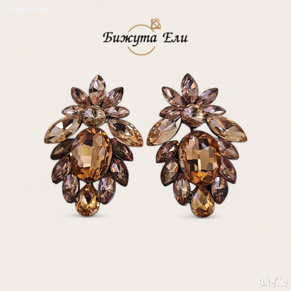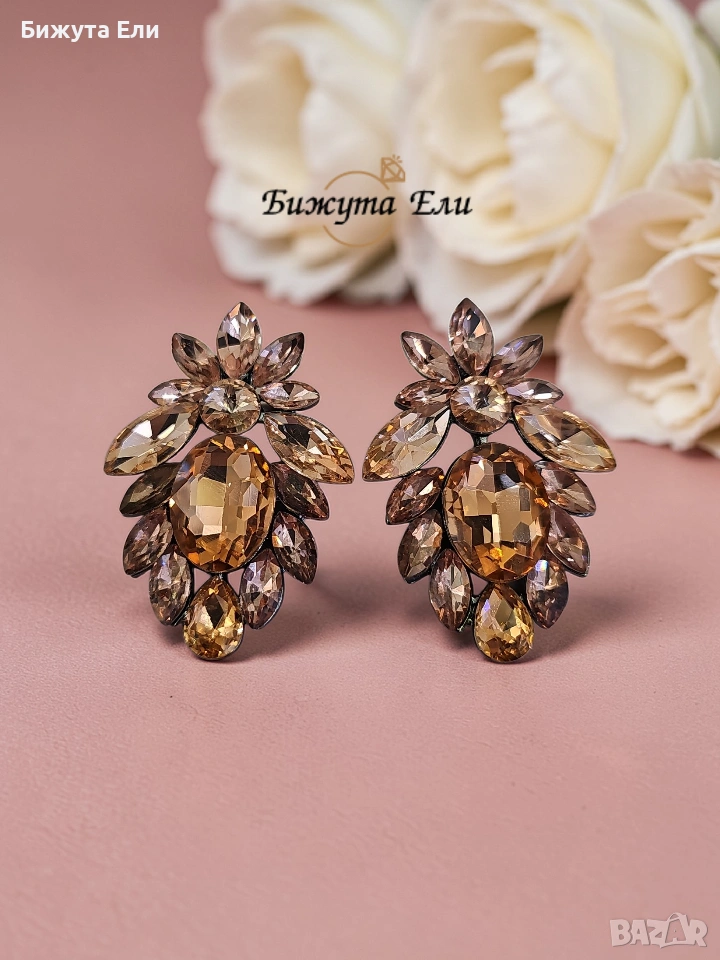Официални обеци с кристали цвят розе голд → Обява 53899385
