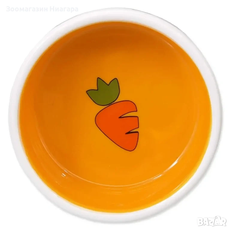 Small Animals Малка кръгла купичка за гризачи в бял цвят с принт морковче.