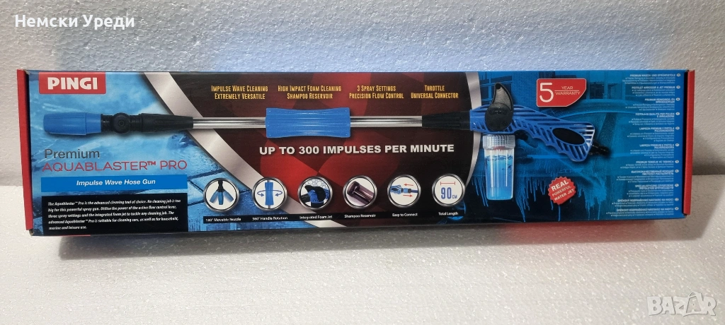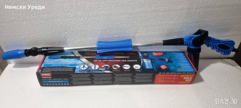 Aquablaster Pro е истинска еволюция в почистването. Вече можете да използвате силата на високоефективните импулсни вълни у дома. Просто го прикрепете към обикновения си градински маркуч и се справете удобно с най-предизвикателните задачи за почистване.