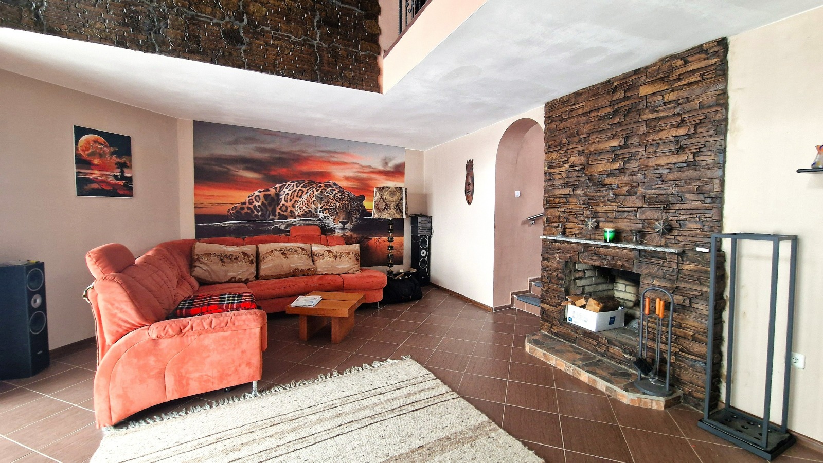 Масивна, двуетажна къща със застроена площ 147 кв.м и разгърната застроена площ 264 кв.м.