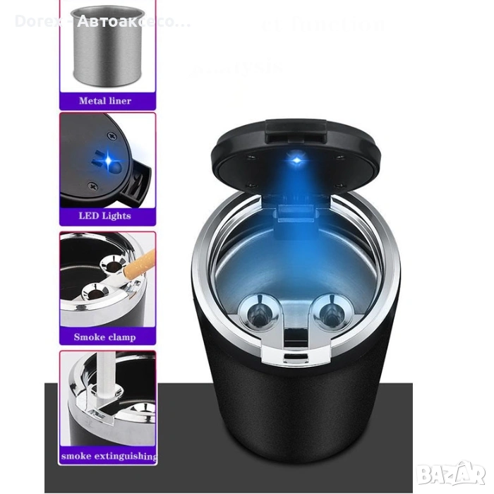 пепелник, създаден да поддържа интериора на автомобила чист и подреден. Компактният дизайн го прави удобен за всяка поставка за чаши.