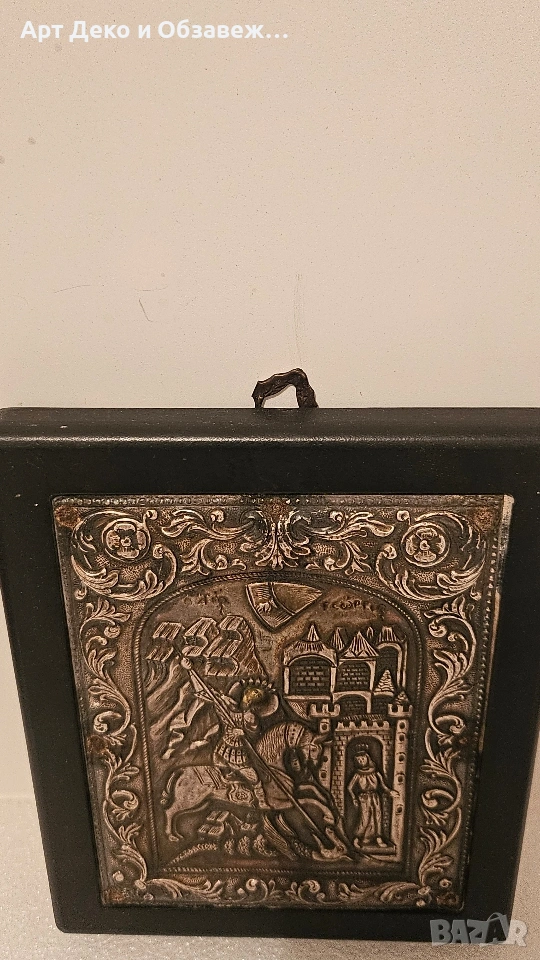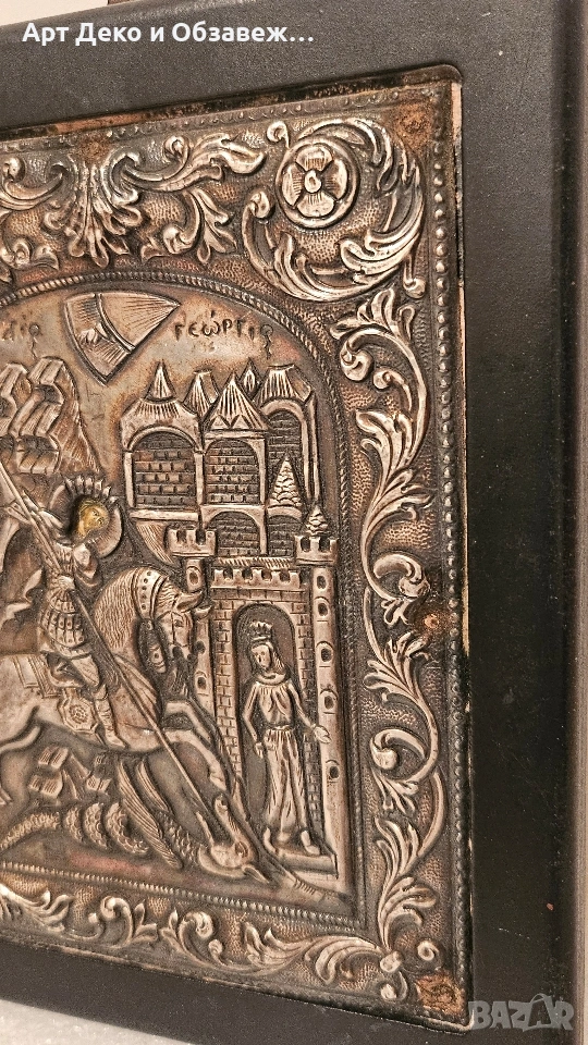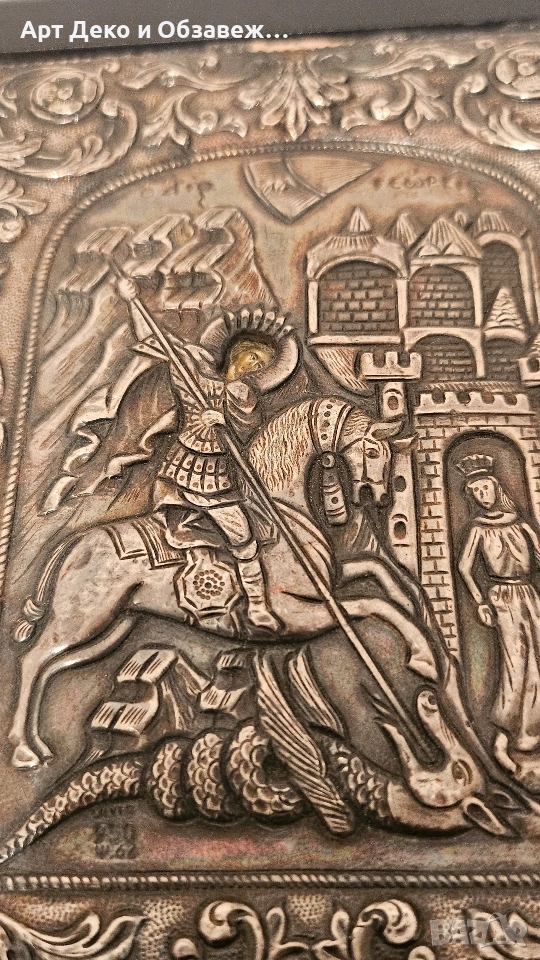 Стара сребърна икона Свети Георги 950 проба 15.5см на 13см.