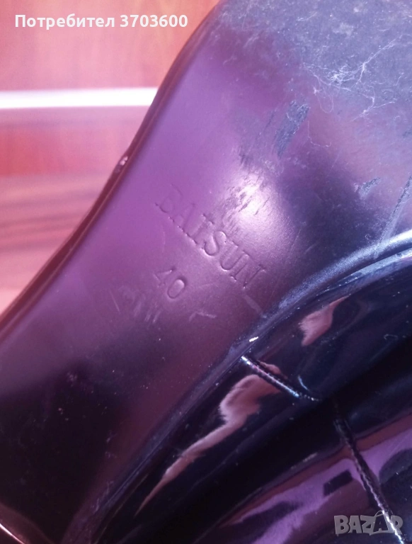 Продавам черни обувки на ток 40 номер -марката им е baisun. Отдолу имат златен кант който може да се види на снимката, ползвани са са броени пъти.