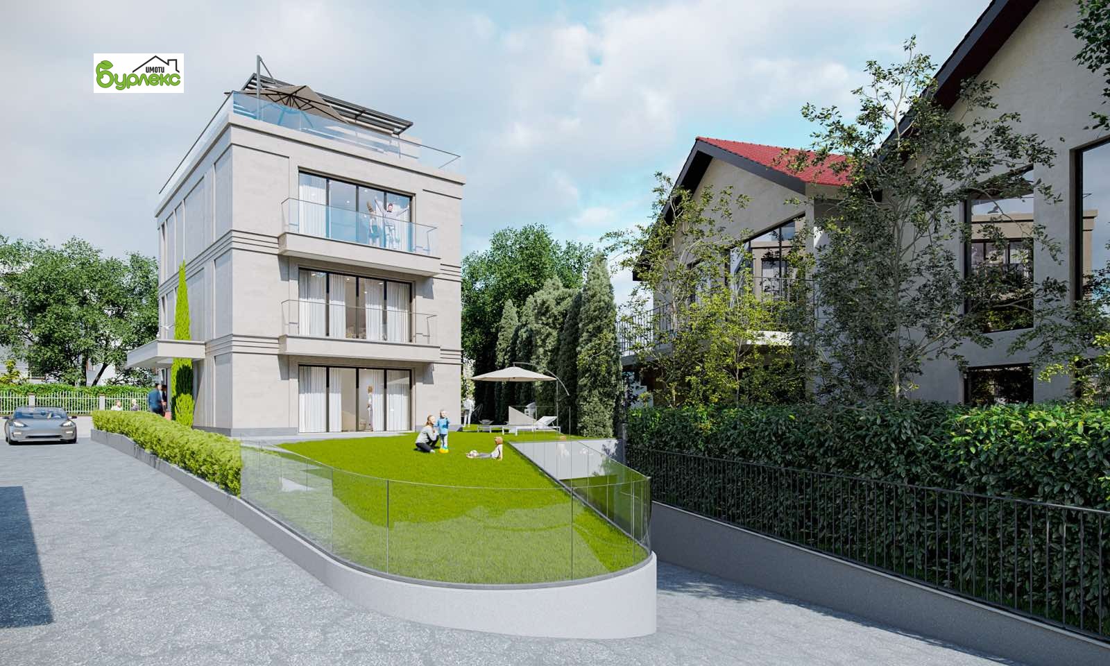 Сградата разполага с три бутикови апартамента, всеки един от които е разположен върху площта на цял етаж, подземни парко места, озеленени общи пространства и кът за отдих.