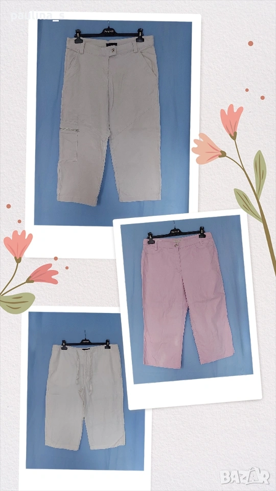 Поради новите правила за заплащане на обновяванията на обявите, моля разгледайте и последните страници на профила ми, обявите са активни и евтини. Три различни броя дамски маркови бермуди, близки размери, като нови и нови.