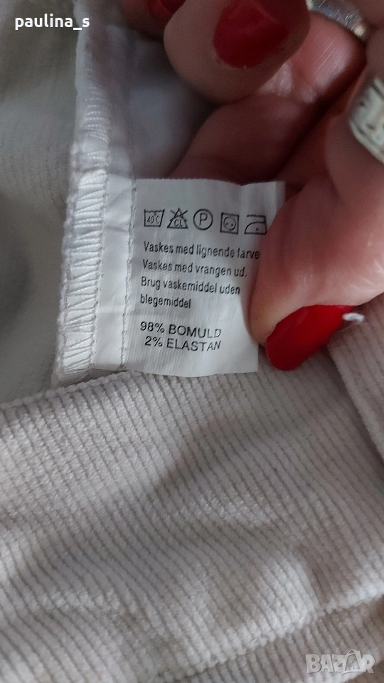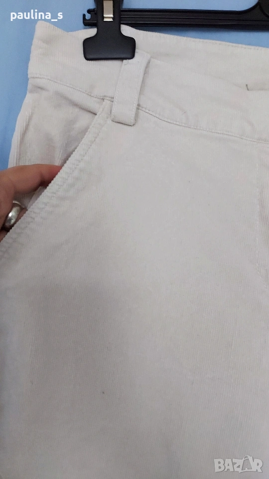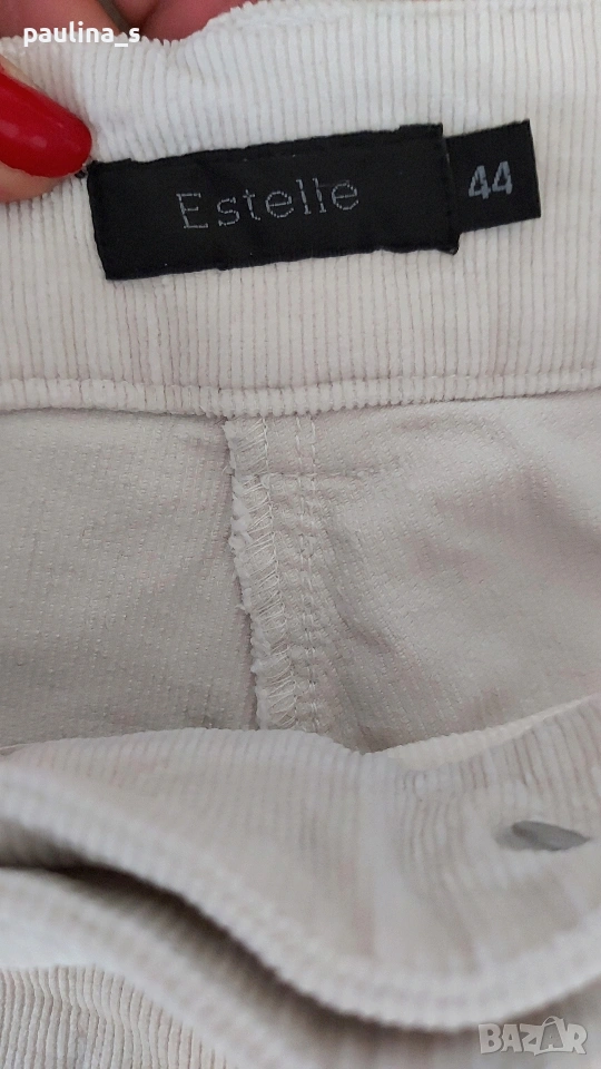3️⃣ ХL / 2XL - "Estelle". Цената е крайна, без пазарлъци 12 евро. Еластични дамски джинси с коси джобове - модел карго бойфренд, прави крачоли и страничен джоб с цип. Материята е памук и ликра с еластичност, хипоалергична и приятна за носене на голо през лятото, покрива няколко размера. Много удобна и красива дреха, талията е нормална. Шнурове може да се нанижат на крачолите, извадени са, вижда се добре на снимка. Цветът е на кост, не са чисто бели, без дефекти са, една бройка, става за посочените размери, вижте мерките в обявата, моля.