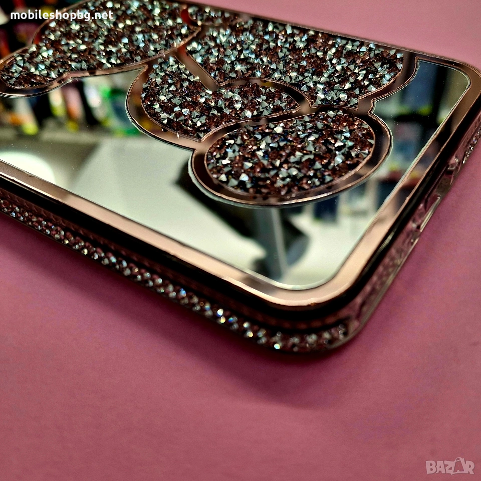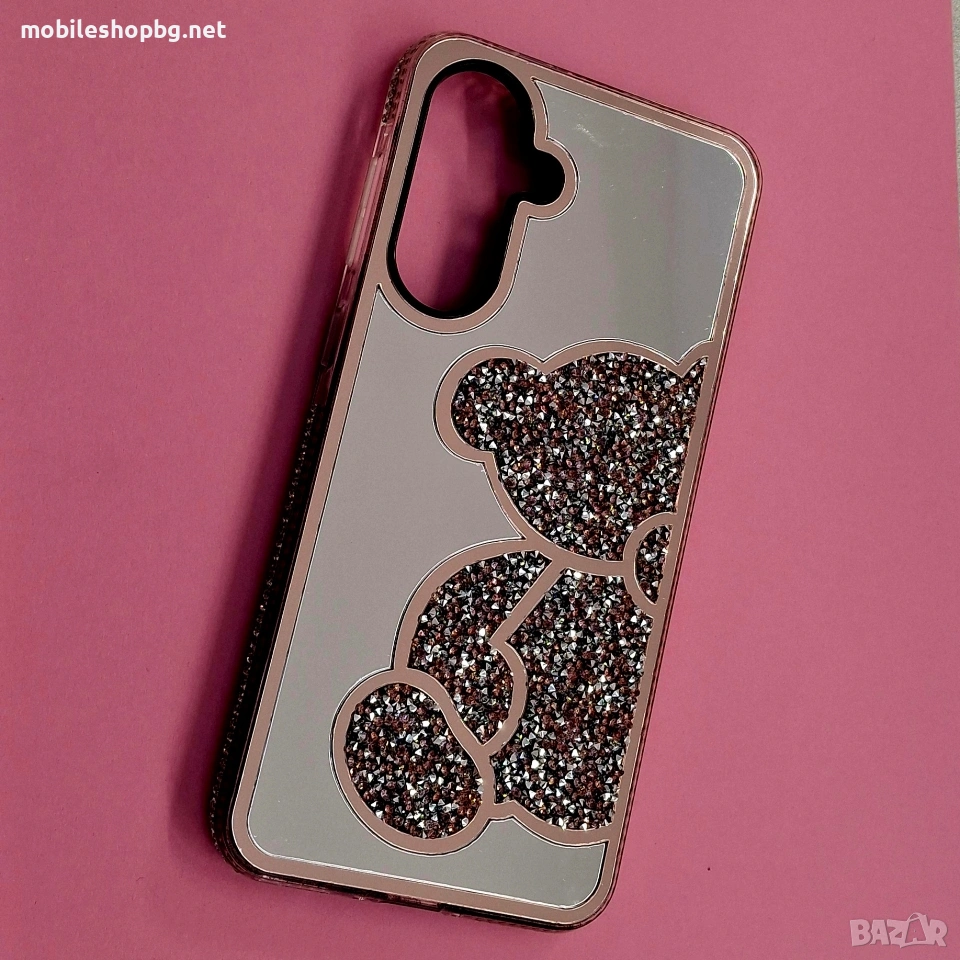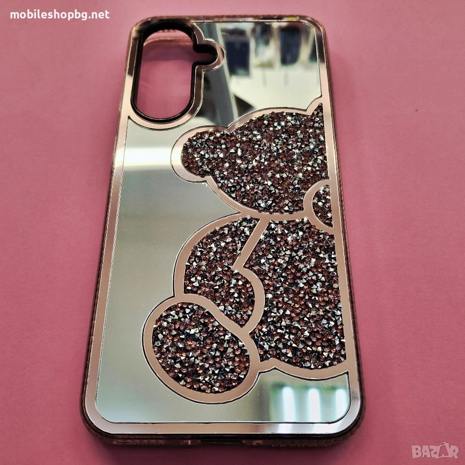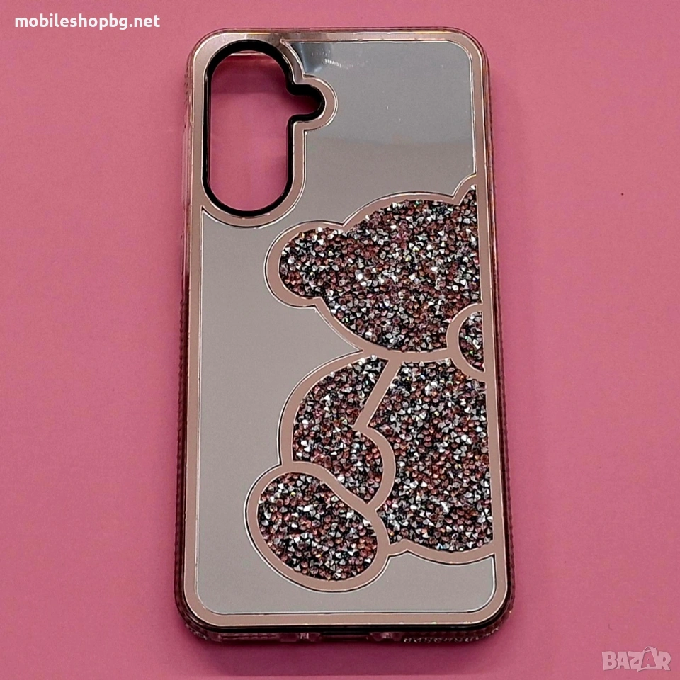 Samsung Galaxy A56 гръб огледален с мече и камъчета розов → Обява 53900293