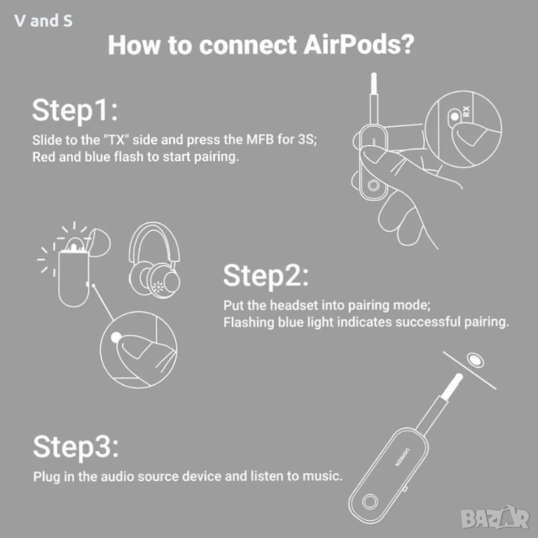* Подходящ за телевизори, компютри, автомобилни стерео системи, слушалки, високоговорители и други устройства с 3,5 мм AUX порт.
