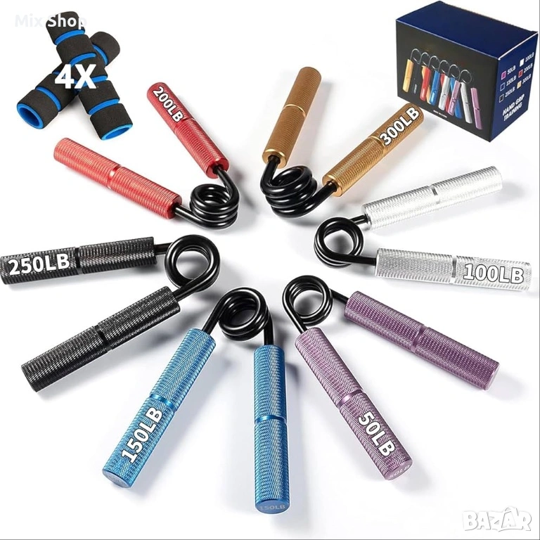 Нов Комплект за трениране на сила на захвата, 50-300 LB ( 6 броя)