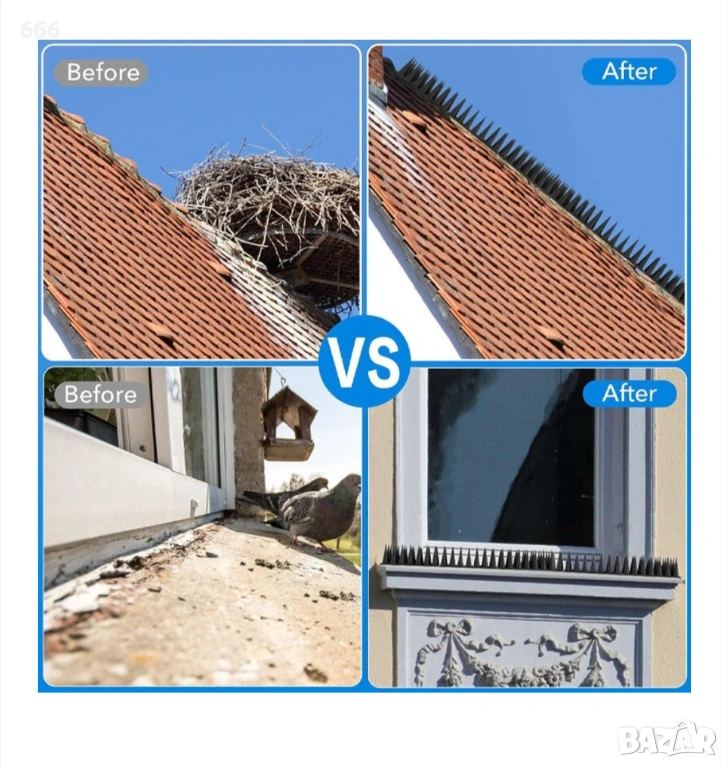 [Хуманна защита] Шиповете за птици ефективно държат животните далеч от прозорци, огради, покриви, тераси или первази във вашия дом. Те възпират малките животни, без да им навредят.