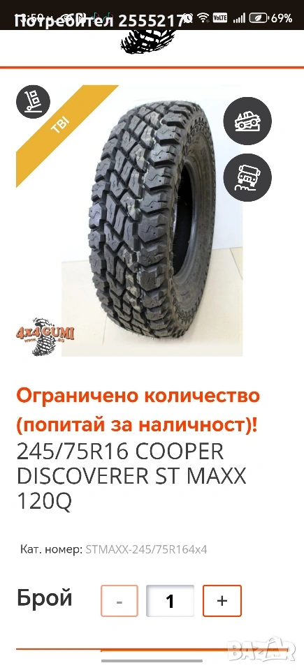 4 броя гуми All Terrain Cooper Discoverer 245/75R16, снимка 1 - Гуми и джанти - 53900438 4 броя гуми All Terrain Cooper Discoverer 245/75R16, снимка 2 - Гуми и джанти - 53900438 4 броя гуми All Terrain Cooper Discoverer 245/75R16, снимка 3 - Гуми и джанти - 53900438 4 броя гуми All Terrain Cooper Discoverer 245/75R16, снимка 4 - Гуми и джанти - 53900438 1/4