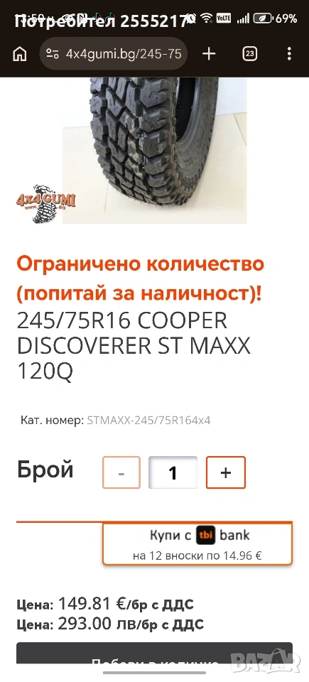 4 броя гуми All Terrain Cooper Discoverer 245/75R16 → Обява 53900438