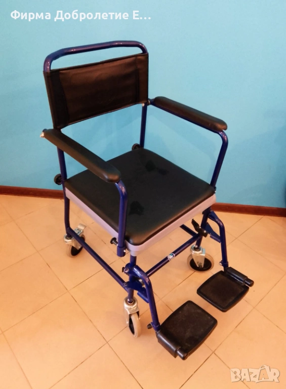 Мобилен тоалетен стол, предназначен за хора с ограничена подвижност. Може да се използва:
