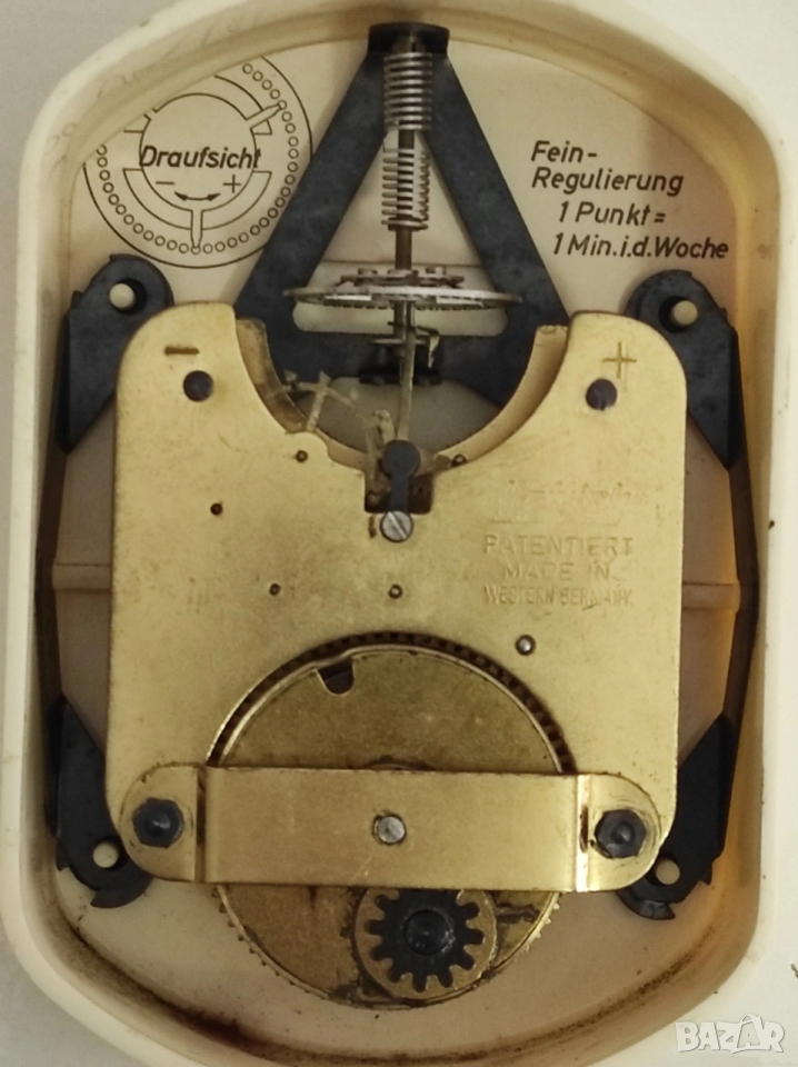 оригинален немски часовник с оригинален ключ марка hettich с механизъм schwebegang работи отлично всичко оригинално по него