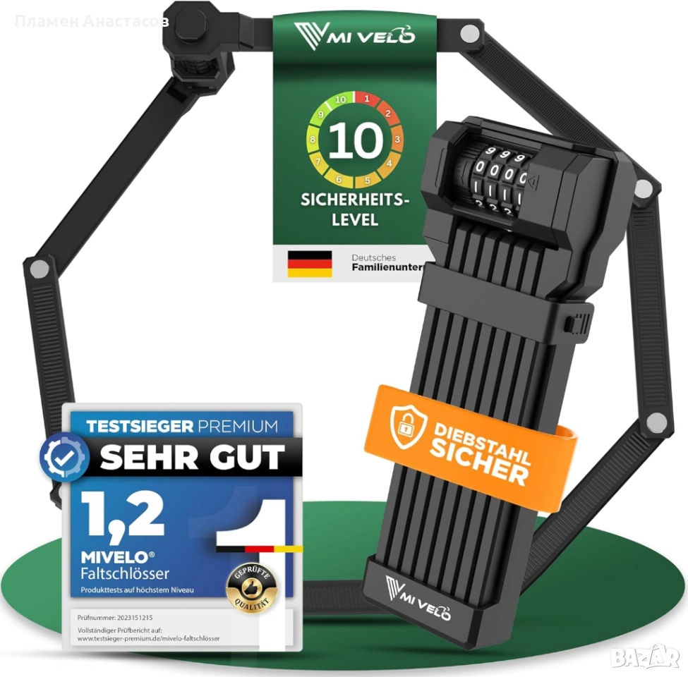 MIVELO Folding Bicycle Lock е надежден и практичен сгъваем катинар за велосипед, създаден за висока сигурност и удобство при ежедневна употреба. С дължина от 120 см, той позволява лесно заключване на велосипеда към различни обекти като стълбове, огради или стойки.