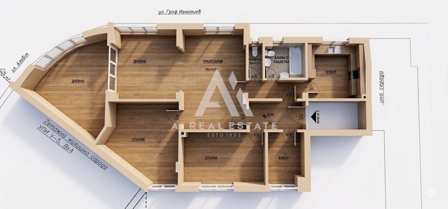 🏢 Апартаментът е 126.50 кв.м. реална площ (не сме замервали дали е светла или не, но може още при първи оглед да се установи), на втори жилищен етаж (трето ниво), сграда от 1933 г., масивна с широки стълбища с извити форми, сградата е санирана и поддържана, като променената фасада, може би не е в най удачните цветове, но това е нещо, което вярвам, че собствениците ценители на района могат да решат и променят. Имота е от периода в който архитектурата е създавана с мисъл за пропорция и устойчивост. Сградата е с два входа от две улици и две секции, като продаваемия имот е в секция с още само два самостоятелни имота малко съседи, ако това е ваше предпочитание. Директен достъп от улица Граф Игнатиев това беше първото ми усещане за неповторимост на локацията, идващите и отиващите си нови и стари трамваи, дават усещането за нещо специално и точно това бих споделил при оглед преди да се качим в жилището. Бих поседял 5 минути точно срещу входа може за някой това да има точно обратната стойност за разлика от моето усещане !