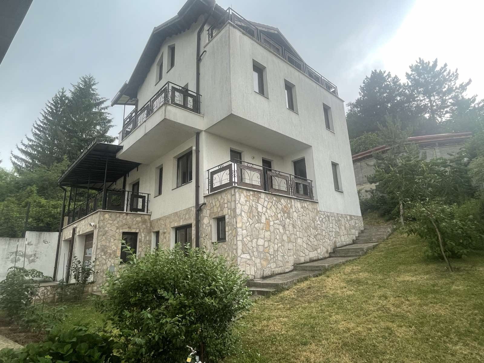 ЕКСКЛУЗИВО предлага две къщи в гр.Банкя с АКТ 16,едната е обзаведена на цена 550000 евро и необзаведена на цена 500000 евро.Къщите са подходящи и за представителство,частна детска градина,дом за възрастни хора,всяка от къщите разполага със шест спални и пет бани.Намират се на много тихо,но комуникативно място с невероятна панорама,в съседство нови къщи.Къщите са със следното разпределение:Сутерен:гараж за две коли,стая за гости,баня,котелно,перално помещение.Първи етаж:Обширен дневен тракт с трапезария,отделна кухня,баня,голяма панорамна тераса.Втори етаж:три спални,две бани,дрешник,две тераси.Трети етаж:Две спални,баня,мокро помещение,две тераси.Настилки гранитогрес,фаянс и теракот,стени латекс.Безкомпромисно строителство,качествени материали,дограма Саламандър,Сот система,кабелна,интернет,трифазен ток,централна канализация,три вида отопление,термопомпа,ток,климатици.Озеленен район с невероятна панорама!!!