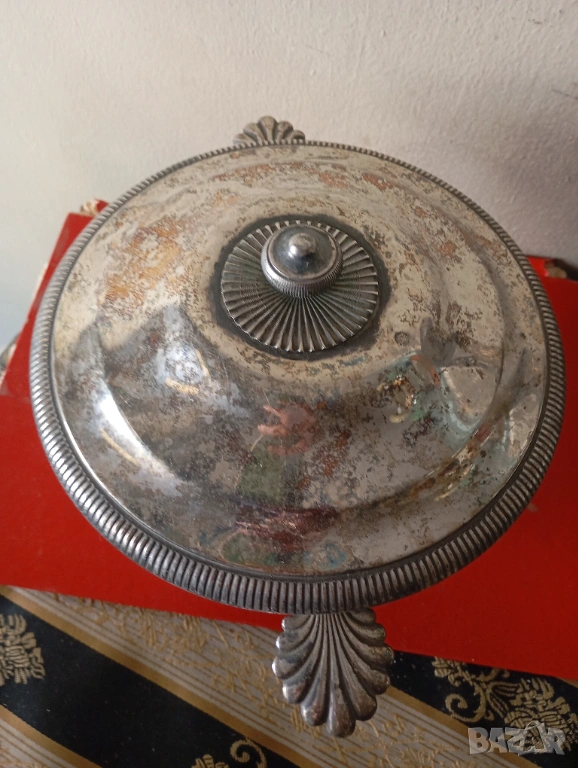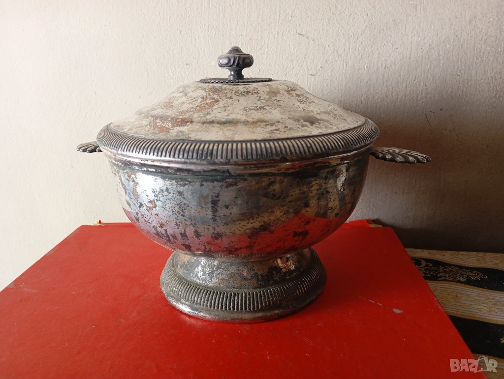 Посребрена купа,фруктиера с капак в стил арт деко → Обява 53900916