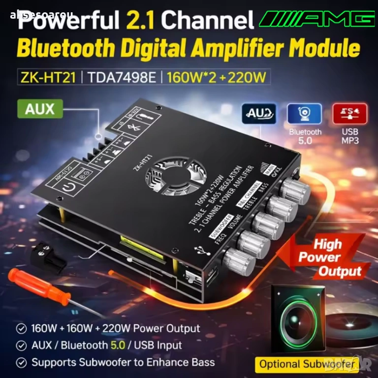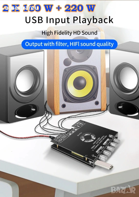със Субуфер TDA7498E DC 15-36 V 160WX2+220W AUX/USB Вход 2.1 Канал HiFi