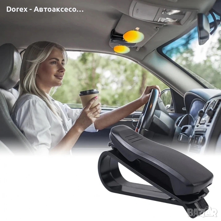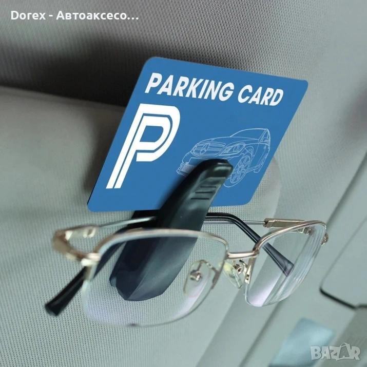 Практична щипка за закрепване на слънчеви очила, карти или други малки предмети на сенника на автомобила. Изработена от здрава пластмаса с меки защитни елементи, които предпазват очилата от надраскване.