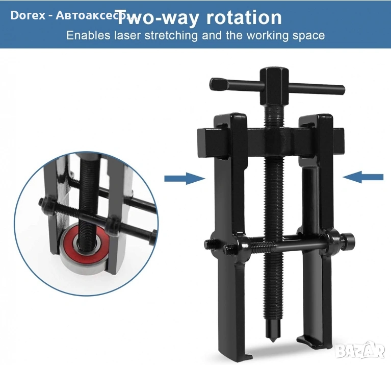 Универсална двураменна скоба, предназначена за лесно издърпване на рамена на чистачки и лагери. Практичен инструмент за всяка работилница, гараж или комплект инструменти.