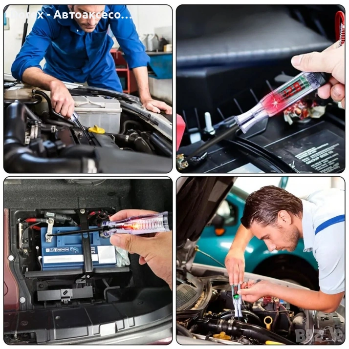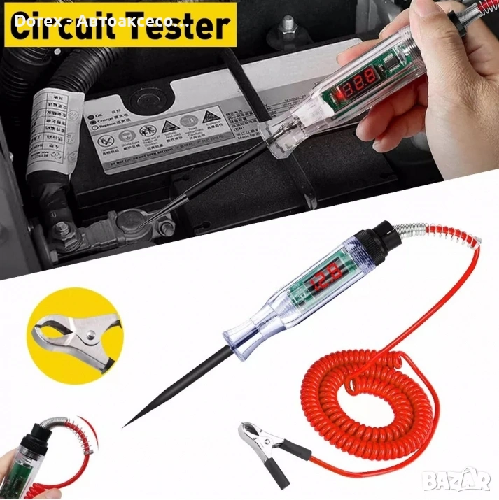 Професионален уред за проверка на електрически вериги на автомобили, идеален за диагностика на фарове, мигачи, предпазители и контакти.