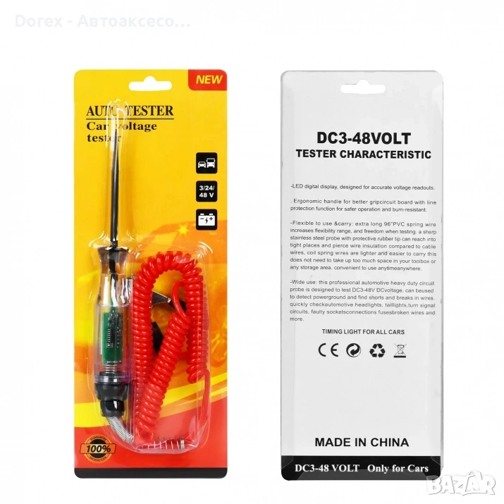 Професионален автомобилен тестер за напрежение 3-48V