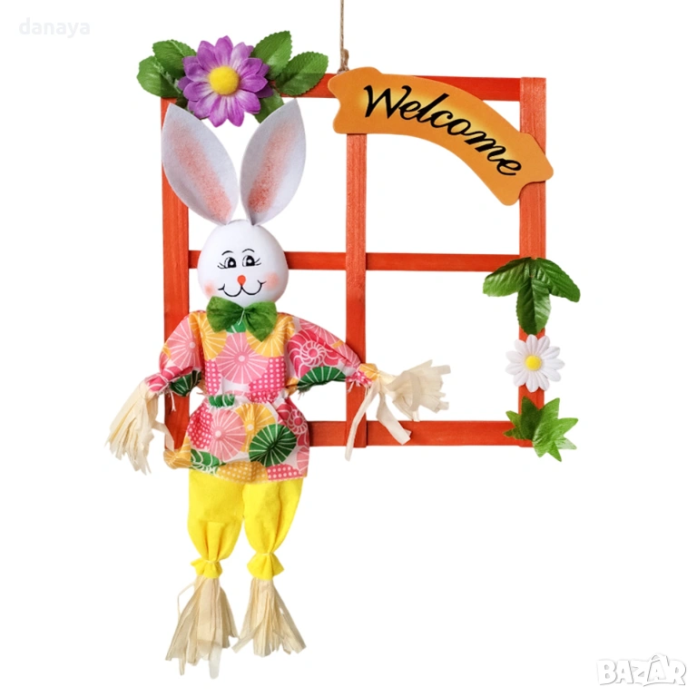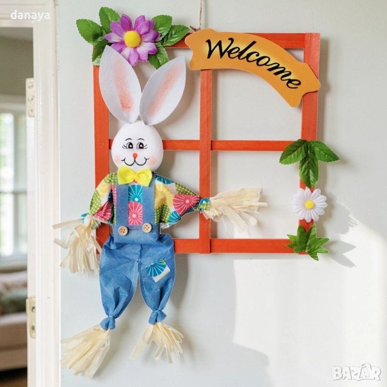 Още щом я закачиш, тази украса променя атмосферата – домът става по-светъл, по-жив и по-празничен. Усмихнатото зайче, цветните детайли и надписът „Welcome“ създават топло посрещане и онова приятно усещане за пролет и ново начало.