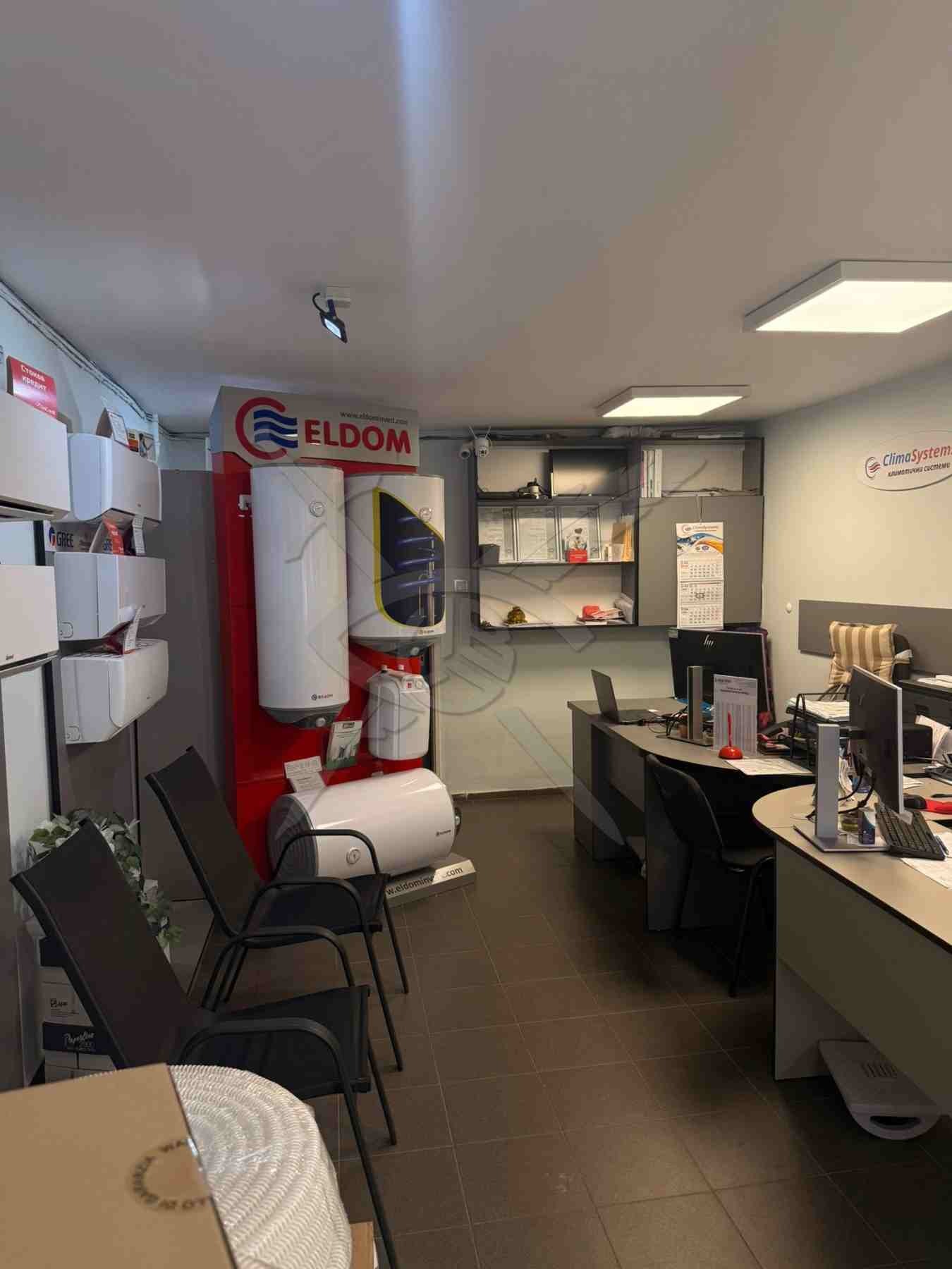РАЗПРЕДЕЛЕНИЕ: Разполага с площ от 68кв.м., състояща се от офис част, междинно помещение, санитарен възел, склад.