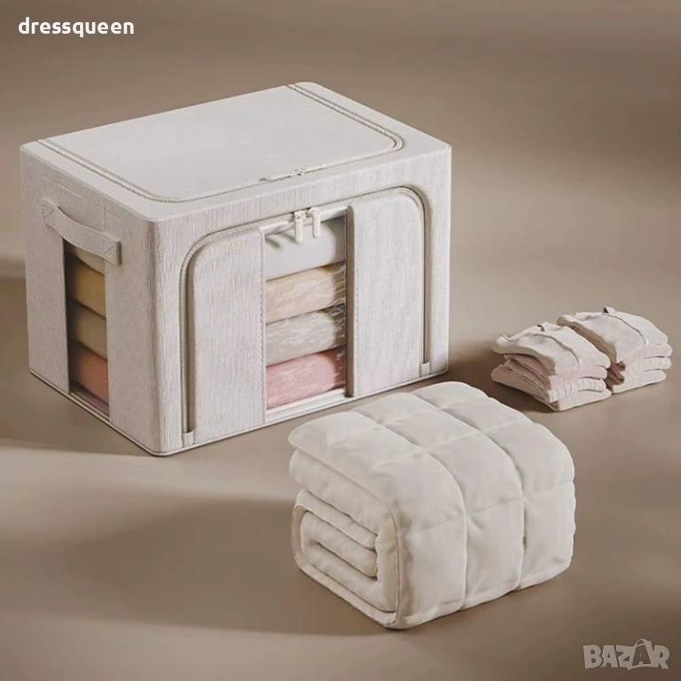Сгъваем органайзер за дрехи и завивки със стоманена конструкция– добавете нотка елегантност и безупречен ред във Вашия дом. Тази кутия не е просто място за съхранение, а стилен интериорен елемент, който преобразява гардеробното пространство. Уникалният дизайн с два прозрачни панела Ви дава пълна свобода – виждате всичко вътре от пръв поглед, без да отваряте циповете.