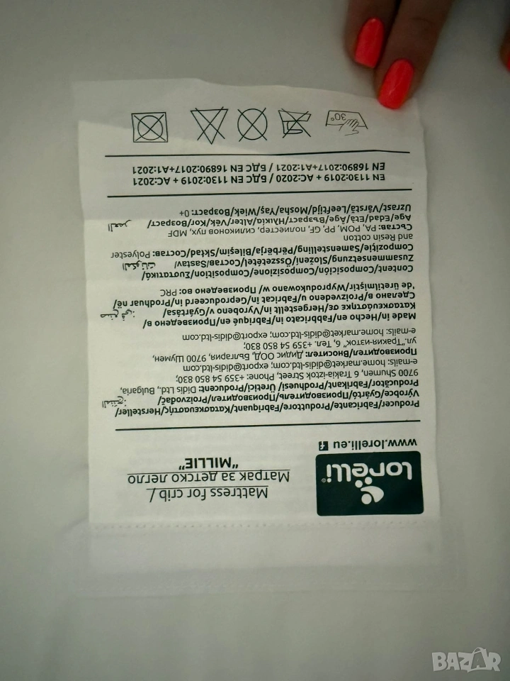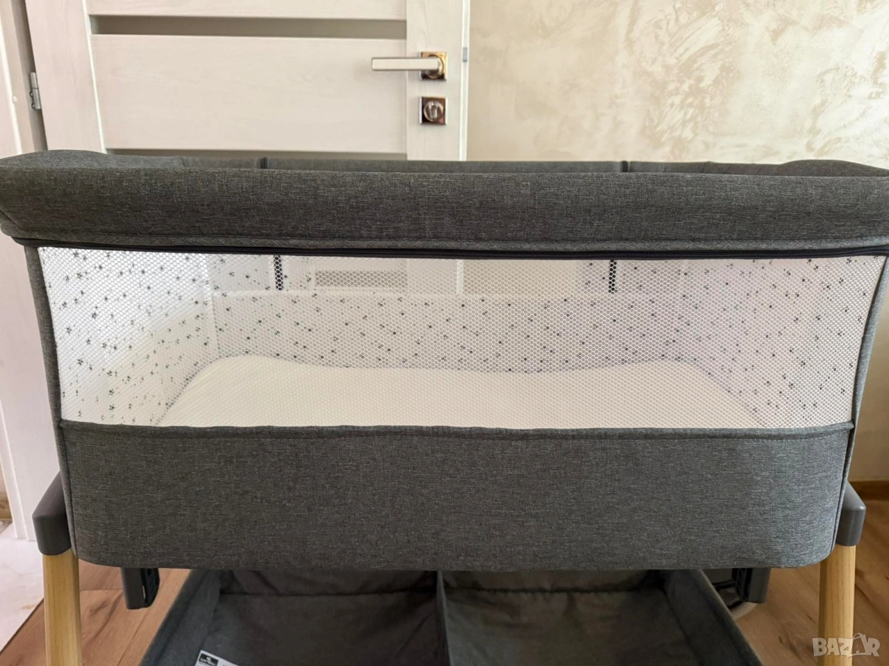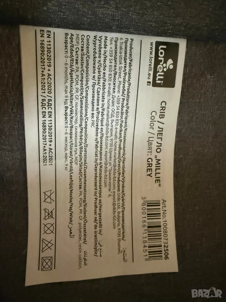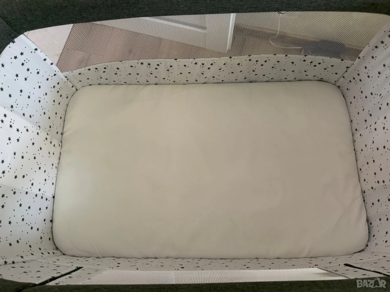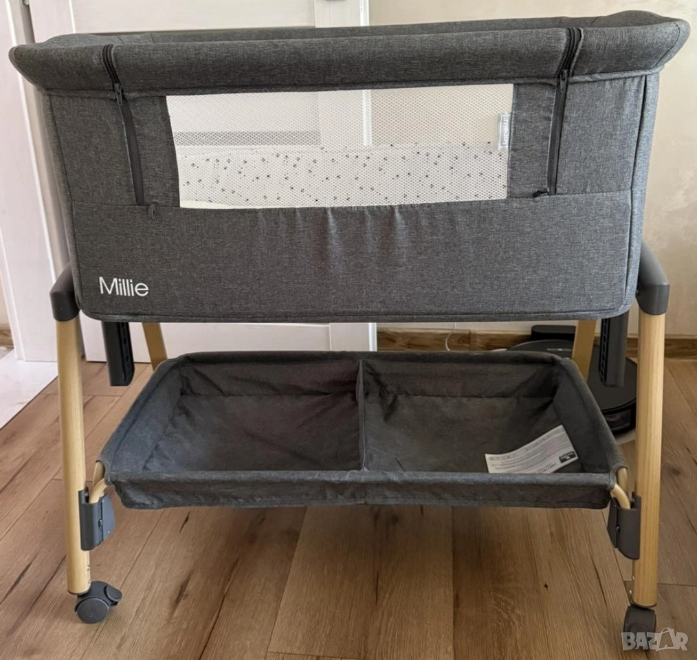 Продавам бебешка мини кошара марка „LORELLI“, модел „MILLIE“, която е подходяща за бебета от 0 до 6 месеца или с максимално тегло до 9 килограма. Кошарата е здрава и без следи от употреба, като позволява на бебето да спи в нея в близост до родителите му. Много е маневрена и удобна за местене в различните помещения в жилището, като е с колелца за придвижване и със спирачка за застопоряване на всяко колелце. Кошарата е с олекотена рамка и със сваляема с цип страна с мрежеста част за по - добро наблюдение на бебето. Има възможност за регулиране на височината в 7 позиции и анти рефлукс функция. Подходяща е за закрепване към повечето легла посредством допълнителни ремъци. Кошарата върви в комплект с: оригиналния й кашон, упътване за сглобяване и разглобяване, комарник, оригинален матрак с размери 81 см х 48,5 см х 3 см и подарък протектор за матрака.