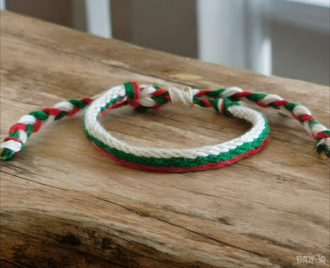 ⬜🟩🟥 Гривна Българския трибагреник ръчно изработена, снимка 1 - Гривни - 53901832 ⬜🟩🟥 Гривна Българския трибагреник ръчно изработена, снимка 2 - Гривни - 53901832 1/2