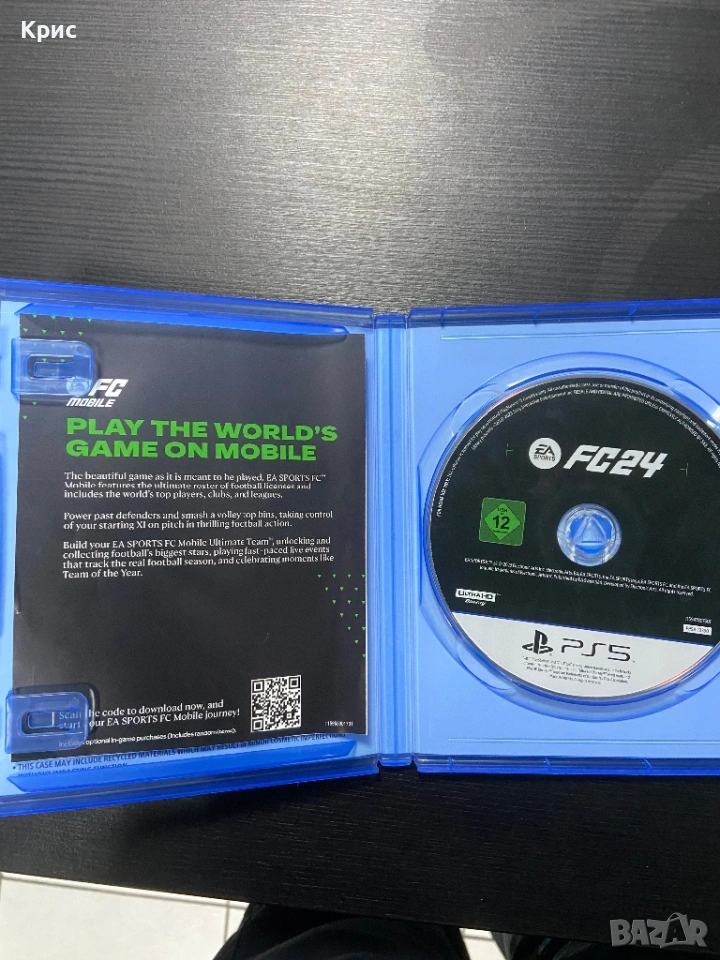 Продавам игра за Playstation 5 Fifa 24.Играта е в добро техническо и визуално състояние.Ползвана е малко.Диска е перфектен.Лично предаване за град София или изпращам по куриер.