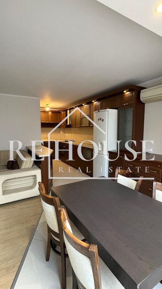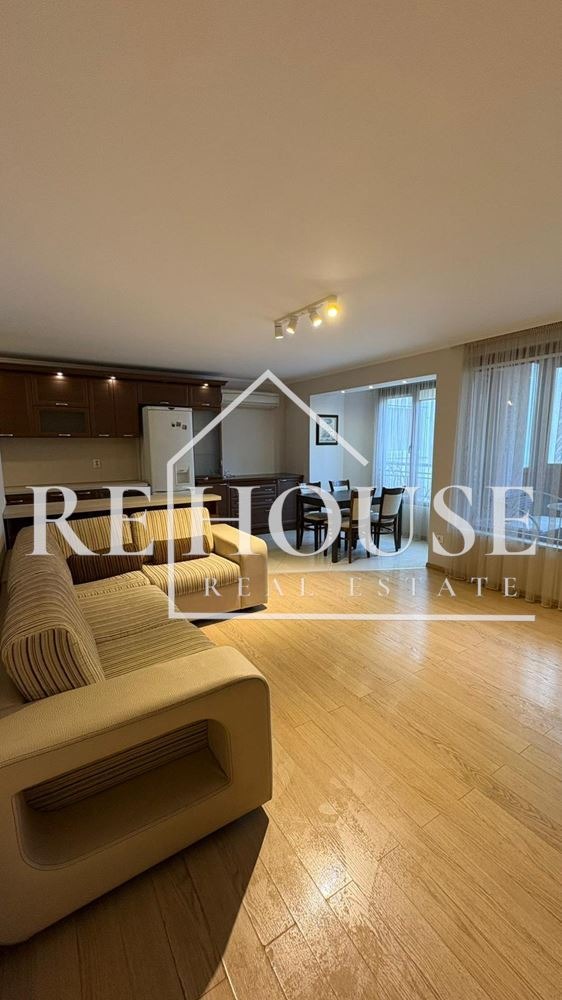 Апартаментът се отличава с много добра вътрешна организация на пространството и усещане за простор и светлина. Дневната зона е с площ от 35 кв.м и предлага комфортна среда за ежедневие и отдих, като е обзаведена с модерна кухня и висок клас електроуреди съдомиялна BOSCH, пералня и фурна AEG. Пространството е решено практично и е подходящо както за семейства, така и за хора с динамичен начин на живот.