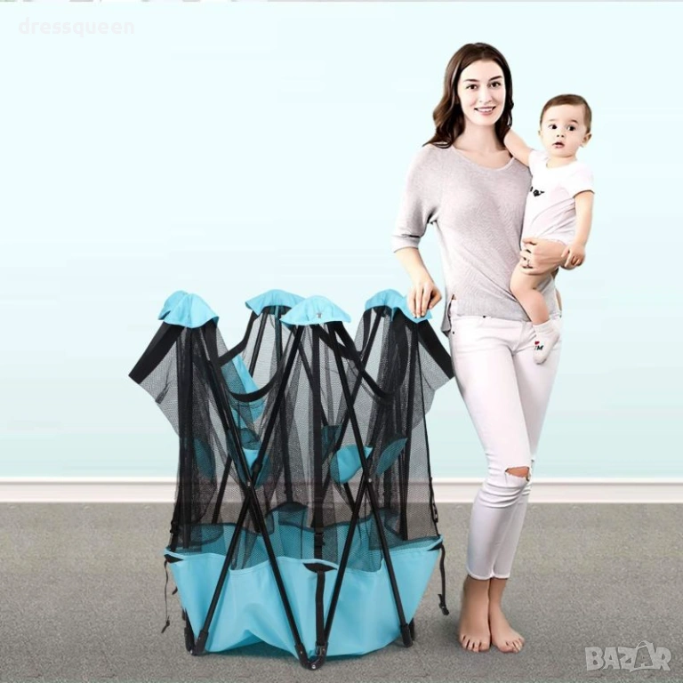 Със своя свеж син цвят и модерен дизайн, кошарата се вписва чудесно във всяка детска стая. Най-голямото ѝ предимство е нейната преносимост – сгъва се за секунди и е готова за следващото приключение в парка или на плажа. Тя е не просто мебел, а личен кът за открития, който дава на родителите спокойствие, а на децата – свобода.