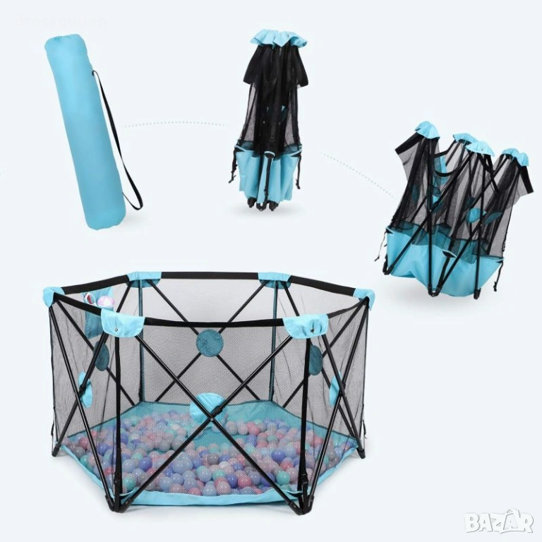 1 брой голяма сгъваема кошара за игра в синьо.