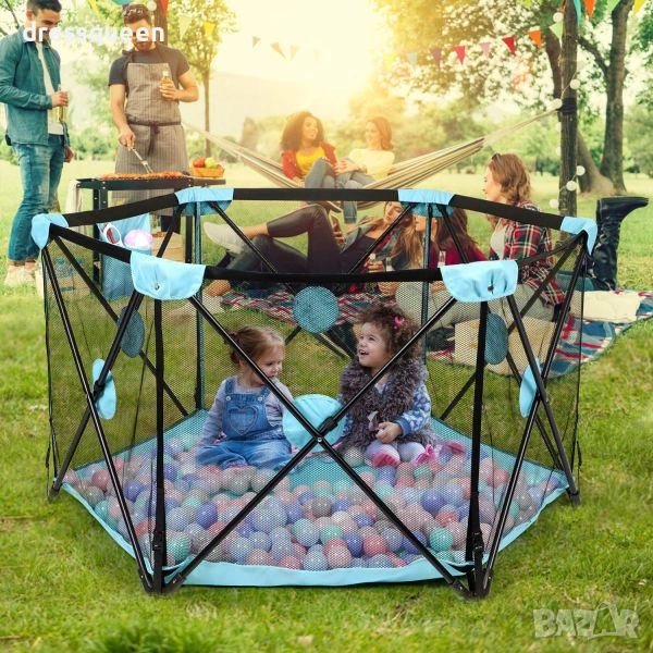 Мобилен детски манеж за игра у дома и в градинатае прекрасен и практичен подарък, който ще зарадва всяко семейство. Превърнете хола или ливадата пред къщи в истински увеселителен парк! Тази голяма шестоъгълна кошара предлага изобилие от място за играчки, топки и забавления, като същевременно държи детето в защитена и контролирана зона.