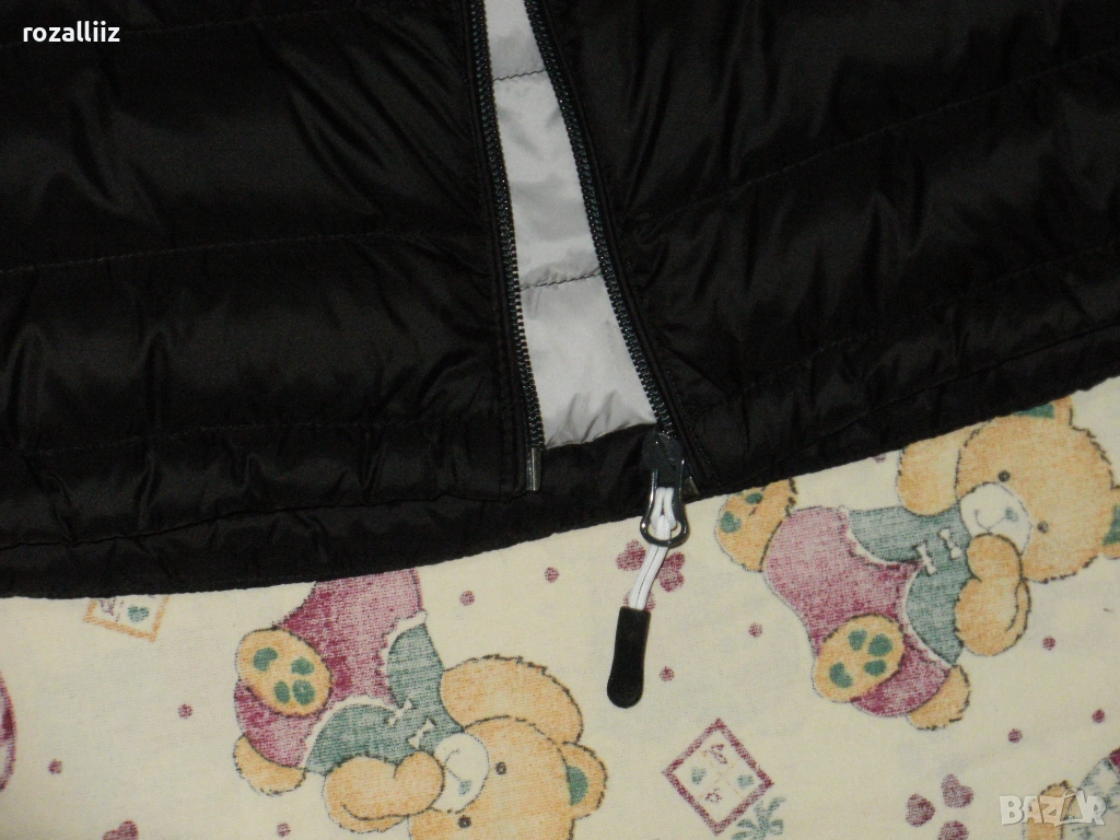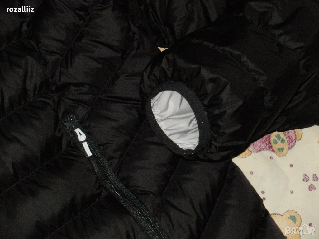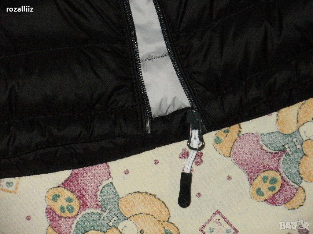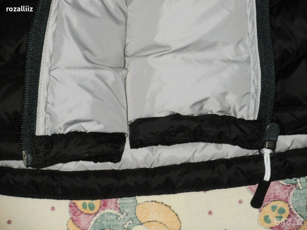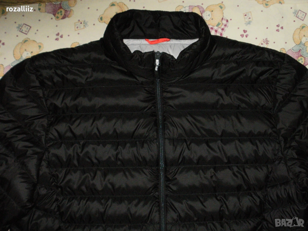 Якето е на TRACKER обличано без забележки неразличимо от ново. Модела е супер леки, пълнежа е 90%-гъши пух и 10%-пера. Закопчава се с цип, отпред има два джоба с ципове, и два вътрешни. Долу има ластик със стопери. Цвета е черно. Отпред е по късо. По номер е 3XL.