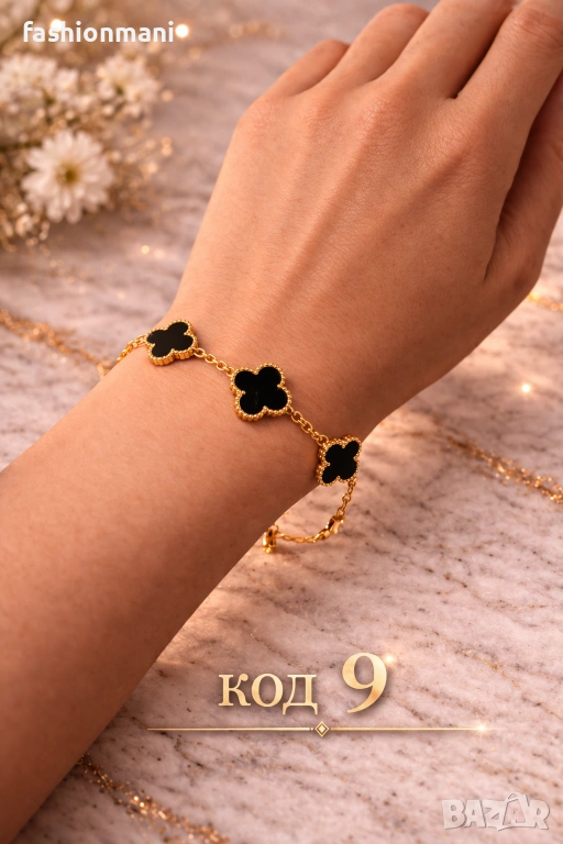Не се влияет от намокряне и наподобяват истинско златно бижу. Ще бъдете винаги в центъра на вниматието. Модели на гривните на Van Cleef. Гривните са с дължина 18см. и имат удължение 4см.