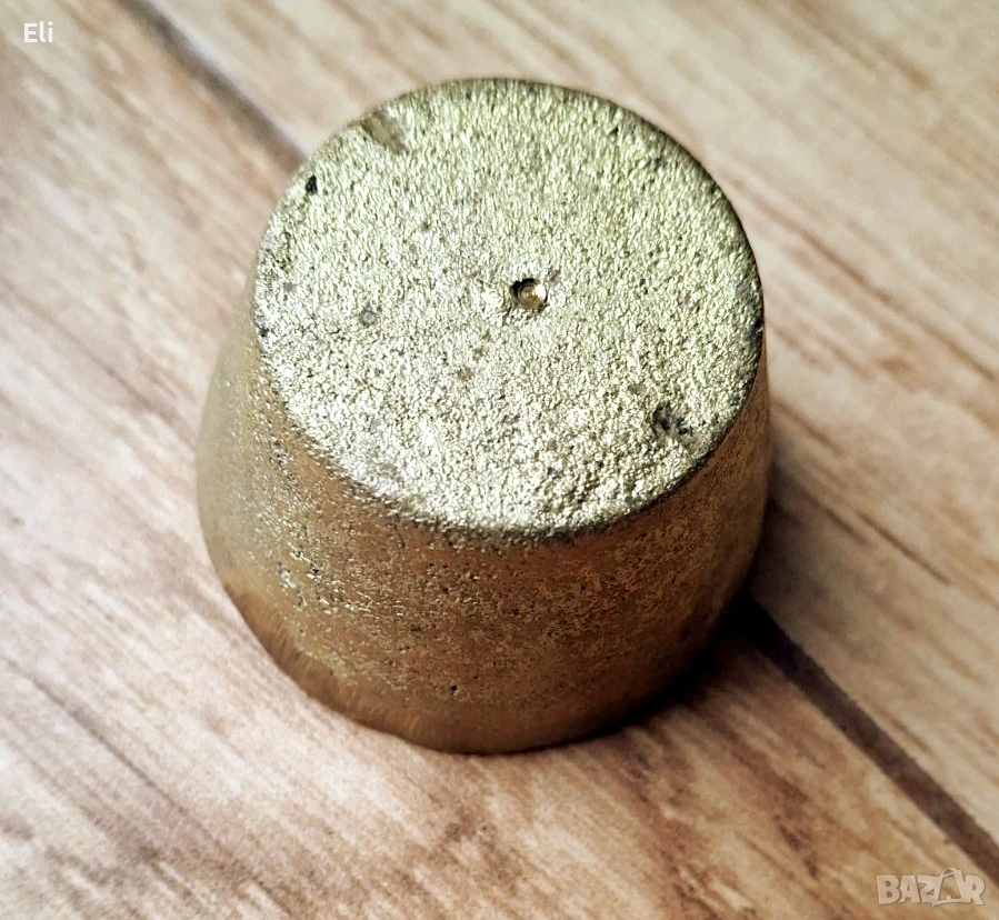 Материал: Изработен е ръчно от бронз , а повърхността често показва следи от патина и употреба с течение на времето.